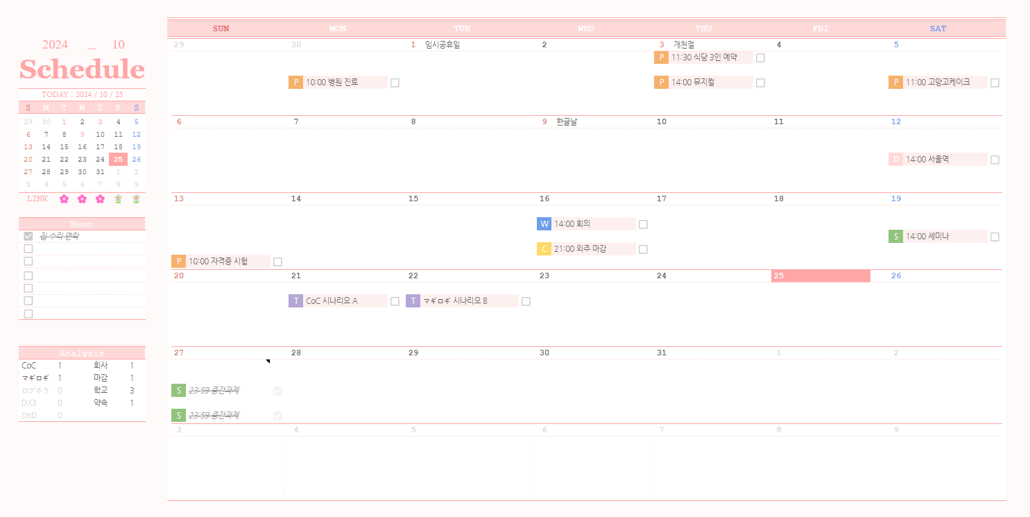 ※ 내부에 작성된 일정은 실제 제 일정이 아니며, 예시입니다.
